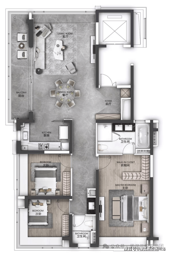 武汉瑞府经典复刻酒店式生活场景,打造延伸的“生活空间”和“主人待客”的礼仪文化。