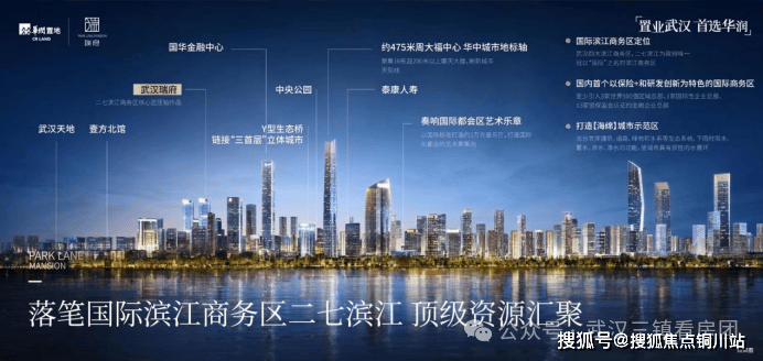 4、二七滨江 武汉的世界进程二七滨江,作为武汉冠以“国际”之名的滨江商务区、国内首个以“保险+”和研发创新为特色的国际商务区;SOM、AECOM、日建、世邦魏理仕等全球前十智囊团荟萃;汇集超16座超200米摩天地标群;未来至少引进13家银保监会认证的金融企业总部;二七滨江国际商务区未来将成为武汉向全球展示的窗口,缔造比肩纽约曼哈顿、上海陆家嘴的全球金融舞台。