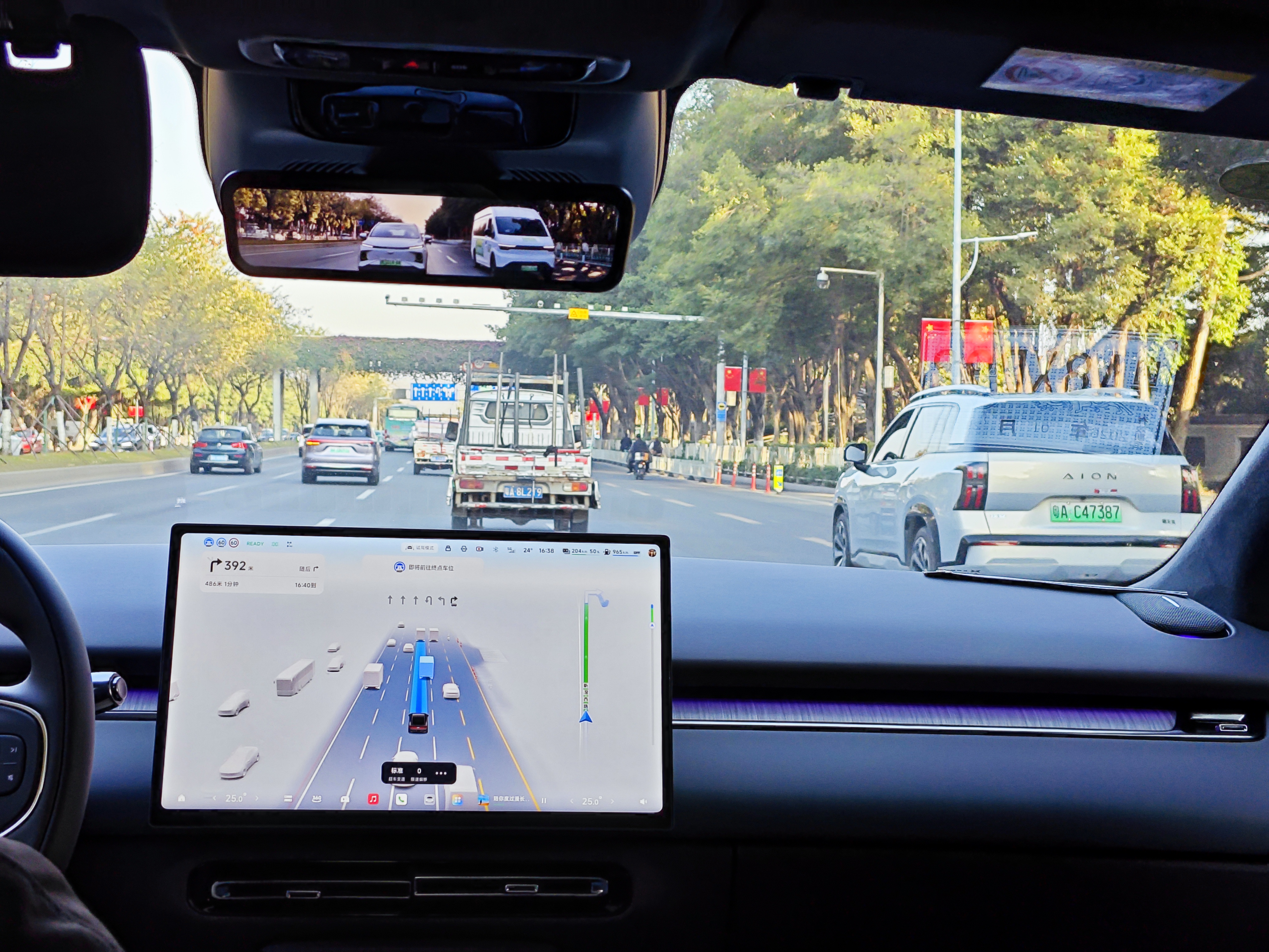电车通让工作人员在合规前提下把电门踩到底,即便在这种急加速、急减速的工况下,坐在后排也没有明显的「点头」或「甩尾」感,更没有那种突如其来的眩晕感。此外,座椅的包裹性很好,全景天窗的遮光能力也足够出色,整体的乘坐舒适度确实到位了,这对于家庭用户来说是刚需。