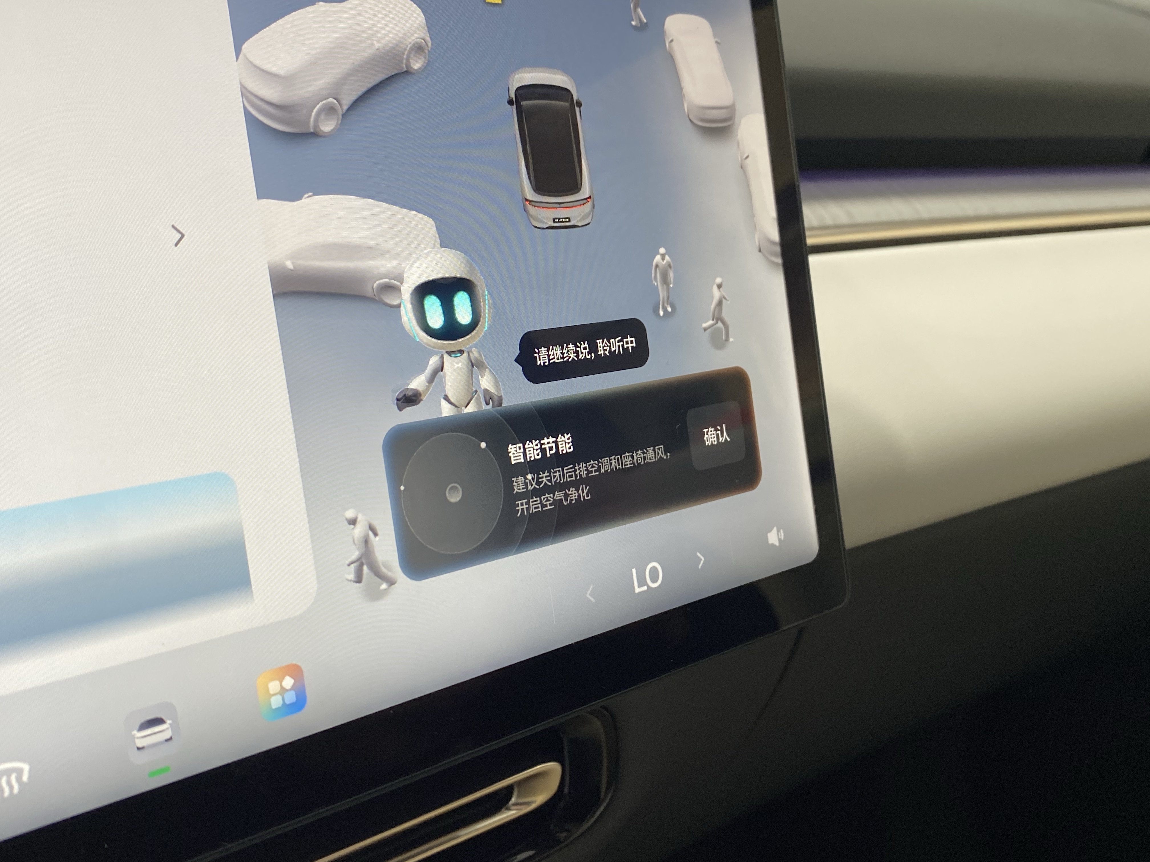在试驾过程中,车机突然冷不丁地冒出一句提醒:「识别到车内空气条件差,建议关闭后排空调和座椅通风,开启空气净化。」