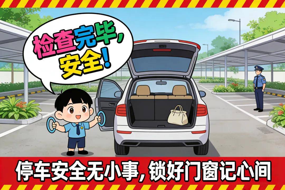 2.开车出行,不要随意停放。车辆务必停放在有人看守的正规停车场,离开前检查车门、车窗是否锁好,车内不放置贵重物品;