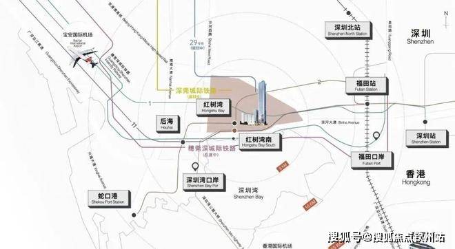 立体枢纽 超速链接湾区生活:6大轨道:2号线号线(规划中)红树湾南站、9号线深湾站及穗莞深城际(规划中)、深莞城际(规划中)六轨交汇,畅达湾区城市群