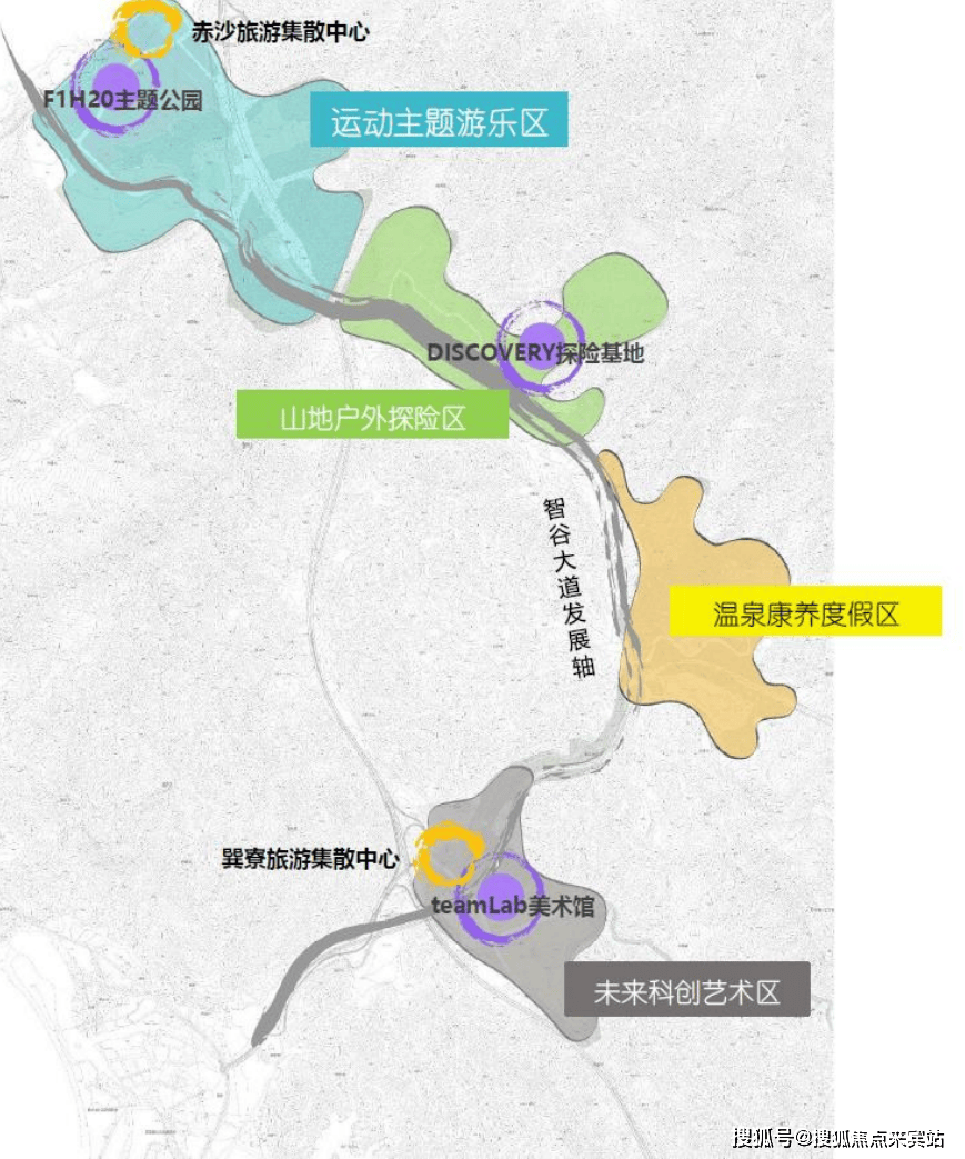 以山海联动为资源特色,以世界级IP植入为引爆点,拥有世界首个F1H20摩托艇赛事主题公园,大湾区首个DISCOVERY探险基地,世界级teamLab美术馆,三大超级文旅IP带动旅游业集聚。