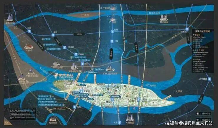 ①项目地处的洛溪岛,是继二沙岛之后,市中心第二个中轴岛,三江汇聚,处于城市中轴与珠江后航道的交汇处;